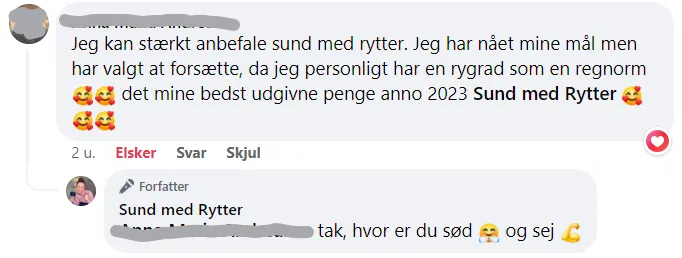 Ved at arbejde med mit mindset sideløbende med implementeringen af realistiske og holdbare vaner, der passer til lige netop MIT liv, er mit overskud og trivsel kommet tilbage. Og jeg føler mig tilpas og attraktiv i min krop!