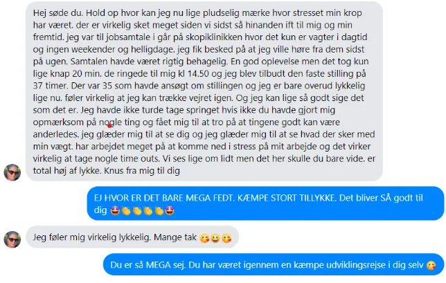 I dag har jeg fundet balancen og trives i egen krop både mentalt og fysisk! Jeg har lært at prioritere mig selv uden skyldfølelse, og jeg har lært at stå op for mig selv og mine egne behov.